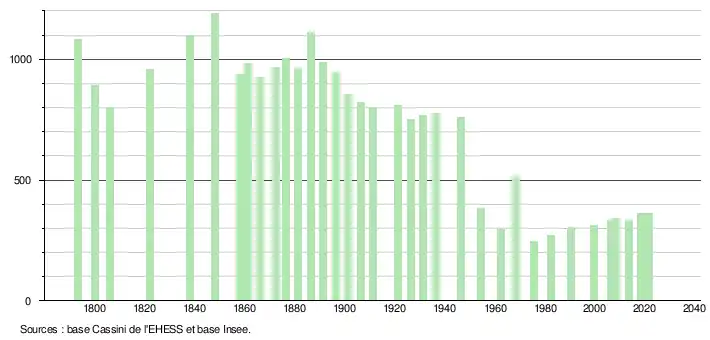 361 hab. (2021 en augmentation de 6,8 % par rapport à 2015)