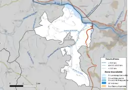 Certaines parties du territoire communal sont susceptibles d’être affectées par le risque d’inondation par débordement du Lot. Les dernières grandes crues historiques, ayant touché plusieurs parties du département, remontent aux 3 et (dans le bassin du Lot, de l'Aveyron, du Viaur et du Tarn) et au (bassins de la Sorgues et du Dourdou)[32]. Ce risque est pris en compte dans l'aménagement du territoire de la commune par le biais du Plan de prévention du risque inondation (PPRI) Lot amont[33], approuvé le 21 décembre 2007[34].