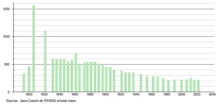 - Fiches Insee - Populations légales de la commune pour les années 2006, 2007, 2008, 2009, 2010, 2011, 2012, 2013, 2014, 2015, 2016, 2017, 2018, 2019, 2020 et 2021.