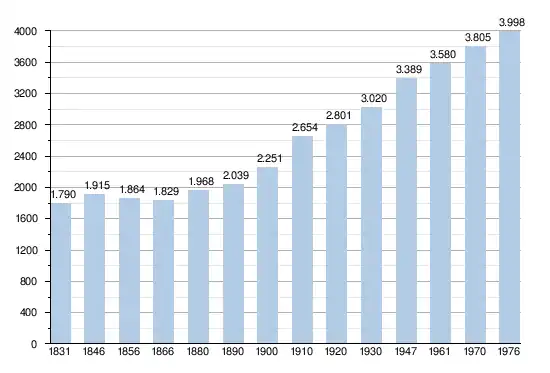 - Sources : INS, Rem. : 1831 jusqu'en 1970 = recensements, 1976 = nombre d'habitants au 31 décembre.