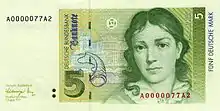 De 1991 jusqu'au , son portrait a été reproduit sur les billets de 5 marks allemands.