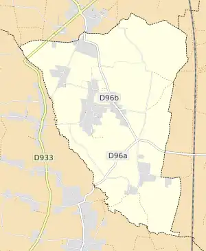- La route départementale D 933 traverse une petite partie du nord-est du territoire. Elle permet de rejoindre Laiz et Pont-de-Veyle par le nord-est et Thoissey et Garnerans par le sud-ouest.