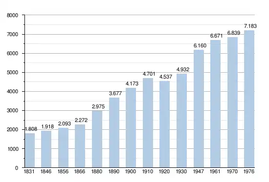 - Source: DGS , de 1831 à 1981=recensements population; à partir de 1990 = nombre d'habitants chaque 1 janvier