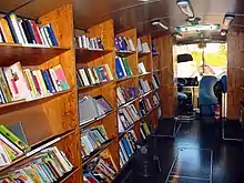 La fondation Bibliomedia, créée en 1920, est un organisme qui, sur mandat de la Confédération, œuvre pour l’éveil au livre, la promotion de la lecture et de la littérature de fiction romande et le développement des bibliothèques de lecture publique[33]. Grâce à l’aide de Bibliomedia[34], deux petits véhicules du type bibliobus ont vu le jour : Bibliomobile et Bain de livres/Bücherbad.