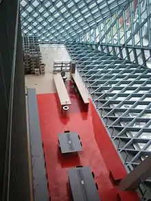 L'immeuble lui-même est compris de trois boîtes avec un espace commun au milieu. Cela crée une forme assez inhabituelle. L'extérieur en forme de zigzag crée par cette forme sert à protéger contre des tremblements de terre qui sont fréquents dans la région [4].