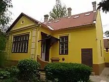De forme rectangulaire, il est constitué d'un simple rez-de-chaussée. La façade arrière, qui donne sur un grand jardin, est dotée d'une véranda fermée. La façade sur rue possède une riche décoration avec des éléments classiques et Sécession, tandis que la façade arrière est de style classique[2]. La façade avant est encadrée de deux projections et d'une zone centrale ; les fenêtres des projections sont surmontées de frontons triangulaires, tandis que les fenêtres centrales sont surmontées de linteaux portant des décorations moulurées[2].
