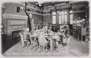 Au tournant du 19e siècle, la place des enfants dans les bibliothèques est de plus en plus une préoccupation pour les bibliothécaires d’Amérique du Nord. Ce changement de mentalité se concrétise dans la création d'espaces adaptés aux enfants et la mise en place de services spécifiquement pensés pour eux[12]. Le Westmount Library Committee est intéressé dès 1898 par la création d’un service dédié à l’enfance, mais les coûts de construction ont pour conséquences de revoir à la baisse la superficie de l'espace, mais aussi les services offerts par la bibliothèque[12]. Mary Sollace Saxe insiste néanmoins pour développer le service aux enfants. Entre 1901 et 1909, la circulation de livres pour enfants représente 15% de la circulation totale des documents, et il y a, chez le personnel, un désir d’augmenter la présence de livres adaptés à cette clientèle[13]. En 1909, le Library Committee suggère au conseil municipal d’octroyer 20 000 dollars à la bibliothèque pour la construction d’une aile consacrée aux services à l’enfance[14]. La demande acceptée, la construction est déléguée à Robert Findlay et est complétée en janvier 1911[15]. La bibliothèque devient alors, selon les mots de Mary Sollace Saxe lors d'une conférence de l’American Library Association : « the only properly equipped children’s room in any library in the province of Quebec. »[15].