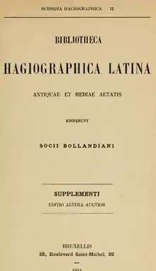 - Bibliotheca hagiographica latina antiquae et mediae aetatis, éditée par la Société des Bollandistes, Subsidia Hagiographica 6 (Bruxelles: Société des Bollandistes, 1898-1901). Elle est accessible sur Gallica en deux volumes et un supplément :