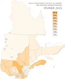 En , on comptait 215 391 adultes prestataires du programme de l'aide sociale au Québec[1].