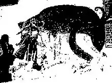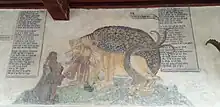 Contrairement à Chicheface qui est efflanquée, Bigorne est bien pansue. A Villeneuve-Lembron, elle est représentée avec une tête et des pattes de félin, des écailles sur le dos et une longue queue.