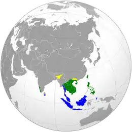 Ce bihoreau niche en Inde, au Népal, en Thaïlande, au Laos, au Cambodge, au Viêt Nam, dans le sud de la Chine, à Taïwan, aux Philippines et dans les îles Ryūkyū. Il réside en permanence dans l’ouest de l’Inde, en Thaïlande, au Laos, au Cambodge, au Viêt Nam, dans le sud de la Chine, aux Philippines, à Taïwan et aux îles Ryūkyū. Il est seulement hivernant au Sri Lanka, en Malaisie, en Indonésie et dans le sud de la Birmanie.