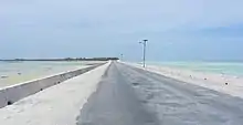 Bikeman est au milieu de la lagune de Tarawa. | ||