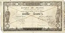 Les deux premiers billets de la Banque de France furent créés en : d'un montant de 1 000 et de 500 francs, ils mirent plusieurs années à trouver leurs formes définitives.
