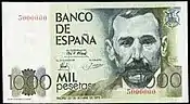 1000 Ptas | 143 × 83 mm | Vert | José de Echegaray | Banque d'Espagne | José de Echegaray | P-154 | ||||