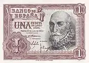 1 Ptas | 75 x 51 mm | Marron | Don Quichotte | Armes et livre | P-139 | |||||