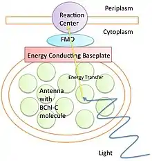 Diverses structures, telles que le complexe FMO des bactéries vertes sulfureuses, sont responsables du transfert de l'énergie des antennes vers un site de réaction. Les études en spectroscopie électronique FT sur l'absorption et le transfert d'électrons montrent une efficacité supérieure à 99 %[10], qui ne peut être expliquée par les modèles mécaniques classiques comme le modèle de diffusion. On les a donc remis en question et dès 1938, les scientifiques ont théorisé que la cohérence quantique était le mécanisme du transfert d'énergie d'excitation.