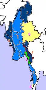 Le birman est la langue officielle de la Birmanie, pratiquement la seule enseignée, ainsi que la langue maternelle de la majorité des habitants natifs de la dépression centrale traversée du Nord au Sud par l'Irrawaddy ainsi que du delta et de la chaîne Tenasserim à l'extrême Sud.