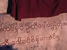 La plus ancienne inscription birmane actuellement connue date du XIIe siècle. Un pilier du stupa Mya Zedi à Bagan constitue une sorte de « pierre de Rosette » des anciennes langues de la région, puisque chacun de ses côtés présente le même texte écrit en pâli, môn, birman et pyu (langue pré-birmane) [2],[3].