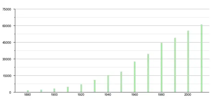 | 1960 | 27 670 | ▲ +49,24 % | |
