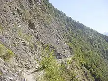 Sur le versant d'en face on aperçoit, en contrebas, le bisse de Clavau.