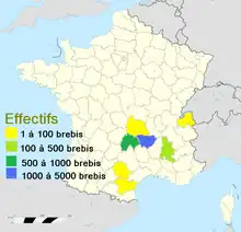 Le berceau de la race se situe entre le Cantal et la Haute-Loire, dans une zone délimitée par Saint-Flour, le col du Lioran, Allanche, Brioude et Langeac[3]. La bizet tient une place très importante dans ses départements. Par exemple, en 1963 et alors que ses effectifs ont déjà commencé à régresser, les 90 000 brebis bizets de Haute-Loire représentent tout de même 45 % des effectifs ovins de ce département[1].