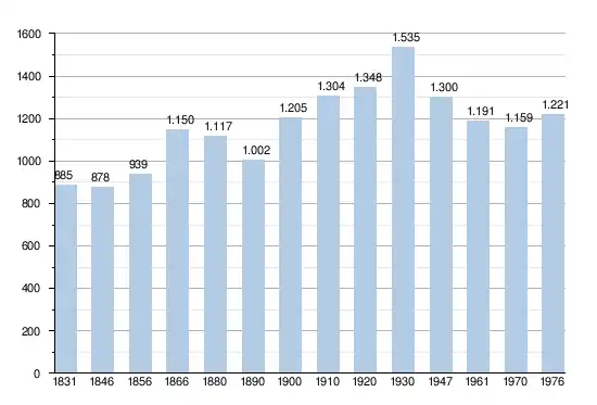 - Sources : INS, Rem. : 1831 jusqu'en 1970 = recensements, 1976 = nombre d'habitants au 31 décembre.