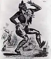 C'est cependant un autre comédien blanc, Thomas D. Rice, qui va véritablement populariser le blackface. Il introduit la chanson Jump Jim Crow et l'accompagne d'une danse dans sa pièce en 1828, ce qui l'érige au rang de vedette en 1832[9],[10]. Rice parcourt les États-Unis, sous le nom de scène de « Daddy Jim Crow ». Le nom Jim Crow deviendra étroitement rattaché à la ségrégation raciale et donnera son nom aux lois Jim Crow qui ont codifié la ré-institutionnalisation de la ségrégation raciale après la Reconstruction[11].