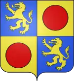 Ecartelé : 1 et 4, d'azur, au loup ravissant d'or (armes de la ville de Sienne); 2 et 3, d'or, au tourteau de gueules (qui est de Monluc).[22] |