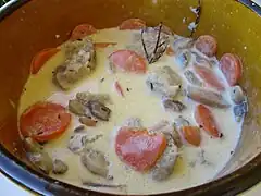 | Mets similaires | Cuisine à la crème, ragoût, bœuf Stroganov, poularde aux morilles, daube provençale, miroton de bœuf |