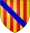Royaume de Majorque : d'or à quatre pals de gueules et à la bande d'azur. Les rois de Majorque étaient des cadets des rois d'Aragon