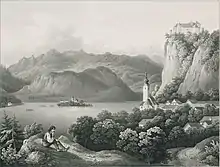 Vue aérienne de Bled et de son lac. | ||