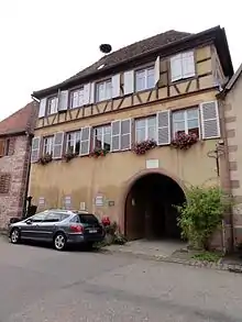 Grande maison centrale qui présente un rez-de-chaussée percé d'arcades de grès. Elle date du début du XVIIe siècle : la date 1602 est gravée dans la pierre. L'ensemble est flanqué d'un porche équipé d'une porte pour piétons. Il se tenait sans doute aussi un petit marché sous les arcades. L'ancienne mairie, détruite dans la deuxième moitié du XIXe siècle, était construite sur le même modèle. Elle abritait sans doute la Laub et la Gemeindestube, citées au XVIIe siècle.