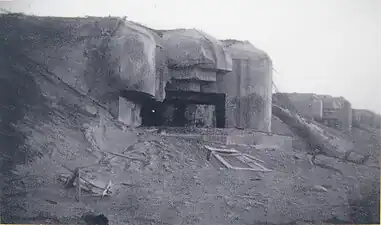 Au premier plan, le blockhaus d'observation au nez arrondi