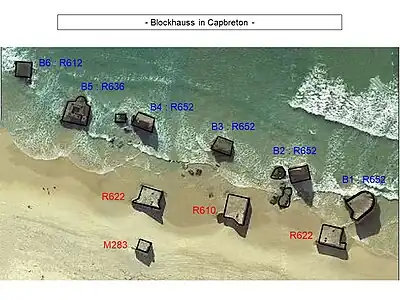 - Le terme de blockhaus est traditionnellement utilisé pour Capbreton, alors qu'il conviendrait plutôt de parler de bunker, un abri souterrain en béton armé. Un blockhaus est en principe une construction en bois.