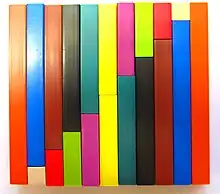 María Antònia Canals s'inspire des réglettes Cuisenaire et des blocs multibases de Dienes pour proposer un système de blocs comportant une dimension spatiale par l'étude des carrés et des cubes[8]. Ses réglettes ne sont pas graduées. Et leurs couleurs donnent des indices sur la décomposition en facteurs premiers des nombres qu'elles représentent[9]: