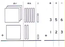 Mais assez rapidement ses successeurs voient l'utilité des blocs pour manipuler des additions et des soustractions à plusieurs chiffres.