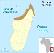 Cette espèce est endémique de Madagascar. Elle se rencontre du niveau de la mer jusqu'à 800 m d'altitude dans le Nord d'île[1],[2].