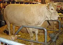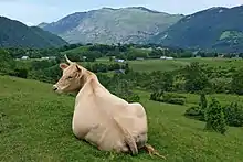 La blonde d'Aquitaine est une race bovine allaitante de grande taille, d'une couleur unie allant selon les individus du froment au blanc crème, aux muqueuses roses.