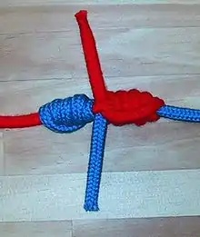 Un blood knot (littéralement « nœud de sang ») est un type de nœud ressemblant au nœud baril.