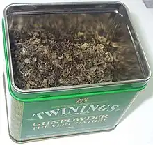 Une boîte à thé, ou boite à thé[1], est généralement en métal et contient du thé en vrac. La particularité de ces boîtes est d'offrir une excellente conservation car le métal, qu'il soit aluminium filé ou fer-blanc imprimé, ne laisse passer ni la lumière ni l'humidité ni les parasites et n'altère pas les qualités organoleptiques du thé. Ces boîtes sont souvent réutilisées après consommation du thé pour protéger d'autres ingrédients ou en décoration dans la cuisine.