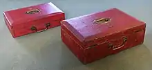 Les boîtes rouges, parfois appelées boîtes ministérielles, sont un type de boîte servant à la communication produite par Barrow Hepburn & Gale et sont utilisées par les ministres du gouvernement et le monarque britannique pour transporter des documents officiels. Semblables en apparence à une mallette, ils sont principalement utilisés pour contenir et transporter les papiers relatifs aux différents ministères. Les boîtes rouges sont une forme moderne de boîtes d'expédition, utilisées par le gouvernement depuis des siècles. Des boîtes d'expédition au design très différent restent en usage dans la chambre de la chambre basse des parlements britannique et australien. Ces boîtes contiennent des livres religieux pour assermenter les nouveaux membres de la chambre, mais sont également utilisées comme lutrins par les membres de la banquette avant.