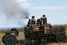 Bofors 40 mm L/70 britannique sur un matériel roulant d'artillerie des années 1950. | |