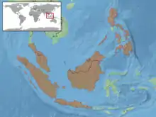 Cette espèce se rencontre en Birmanie, au Bangladesh, au Cambodge, en Inde (dans l’État d'Assam), en Indonésie, au Laos, en Malaisie, aux Philippines, à Singapour et en Thaïlande[1].