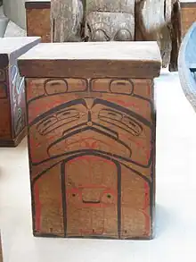 Les boîtes en bois courbé sont un produit traditionnel fabriqué par les peuples des Premières nations de la côte ouest nord-américaine, notamment les Haïdas , les Gitxsan , les Tlingits , les Tsimshians , les Sugpiaq , les Unangax , les Yup'ik , les Inupiaq et les Salish du littoral. Ces boîtes sont généralement fabriquées à partir d’un seul morceau de bois étuvés à la vapeur et plié pour former boîte. Les utilisations traditionnelles des boîtes étaient variées et comprenaient le stockage de produits alimentaires, de vêtements et d'inhumation. Elles étaient souvent dépourvues de décoration alors que d'autres étaient décorées avec minutie. Aujourd'hui, beaucoup sont faites pour les collectionneurs et peuvent être achetées dans des musées, des boutiques de cadeaux et des sites en ligne, ainsi que directement sur commande par des artistes[1],[2],[3],[4].