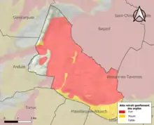 Le retrait-gonflement des sols argileux est susceptible d'engendrer des dommages importants aux bâtiments en cas d’alternance de périodes de sécheresse et de pluie. 88,7 % de la superficie communale est en aléa moyen ou fort (67,5 % au niveau départemental et 48,5 % au niveau national). Sur les 1 041 bâtiments dénombrés sur la commune en 2019, 1002 sont en aléa moyen ou fort, soit 96 %, à comparer aux 90 % au niveau départemental et 54 % au niveau national. Une cartographie de l'exposition du territoire national au retrait gonflement des sols argileux est disponible sur le site du BRGM[23],[Carte 2].