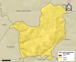 Le retrait-gonflement des sols argileux est susceptible d'engendrer des dommages importants aux bâtiments en cas d’alternance de périodes de sécheresse et de pluie. La totalité de la commune est en aléa moyen ou fort (67,7 % au niveau départemental et 48,5 % au niveau national). Sur les 237 bâtiments dénombrés sur la commune en 2019, 237 sont en aléa moyen ou fort, soit 100 %, à comparer aux 72 % au niveau départemental et 54 % au niveau national. Une cartographie de l'exposition du territoire national au retrait gonflement des sols argileux est disponible sur le site du BRGM[21],[Carte 2].