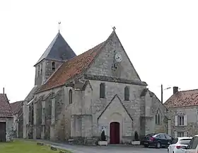 - Église Saint-Étienne, dont la première travée de la nef date du XIIe siècle, qui supporte le clocher, plus récent. Cette travée communique avec le reste de la nef par avec la nef par une arcade en plein cintre à ressaut. Le chapiteau qui la reçoit au nord est décoré de deux masques crachant des rinceaux. Une chapelle de deux travées, comprenant une fenêtre à deux lancettes trilobées surmontées d’un quadrilobe inscrit dans un cercle de style gothique flamboyant, est construite du XIIIe siècle au sud du chœur, très remaniée, ainsi que le chœur au XVIe siècle. la nef est dotée du bas-côté sud de style gothique tardif au début du XVIIIe siècle[37]