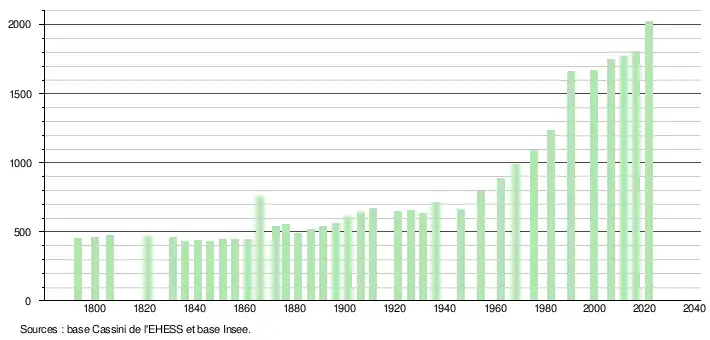 En 2021, la commune comptait 2 024 habitants[Note 3], en augmentation de 11,64 % par rapport à 2015 (Val-d'Oise : +3,39 %, France hors Mayotte : +1,84 %).