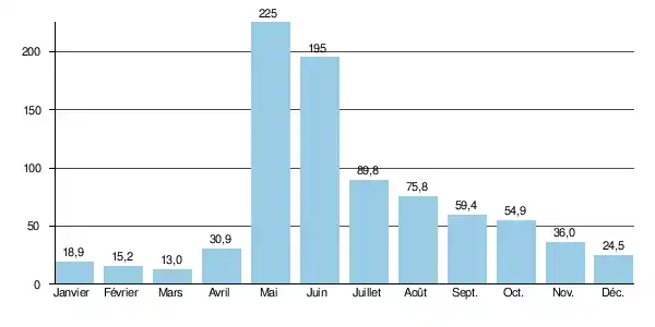 | Débit moyen | 69,5 m3/s (Lempiny) à 65 km de la confluence |