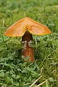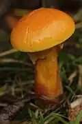 Son chapeau mesure 2 à 15 cm, il est visqueux, de couleur jaune citron à orangé vif ou roussâtre[3].